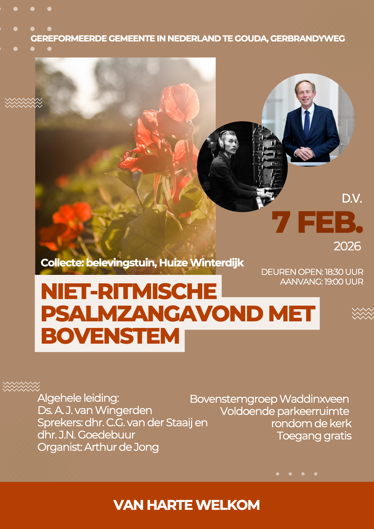 Op D.V. 7 februari 2026 vindt er een psalmzangavond plaats in de kerk, georganiseerd in samenwerking met de bovenstemgroep Waddinxveen.